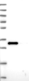 A Western blot analysis is performed on a panel of human tissues and cell lines to evaluate antibody specificity. For antibodies with unreliable result a revalidation using an over-expression lysate is performed.