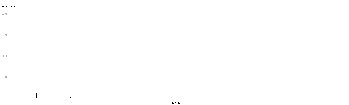 At the top of the view, the position of the antigen (identified by the corresponding HPA identifier) is shown as a green bar. A yellow triangle on the bar indicates a <100% sequence identity to the protein target.