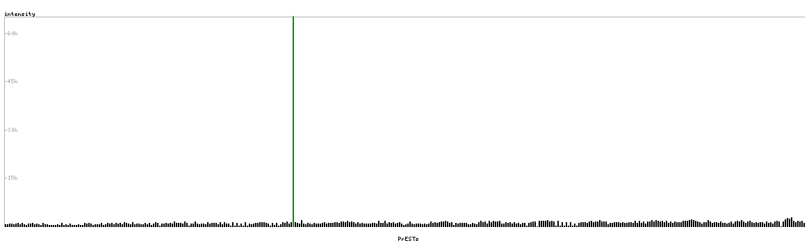 At the top of the view, the position of the antigen (identified by the corresponding HPA identifier) is shown as a green bar. A yellow triangle on the bar indicates a <100% sequence identity to the protein target.
