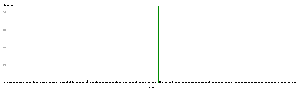At the top of the view, the position of the antigen (identified by the corresponding HPA identifier) is shown as a green bar. A yellow triangle on the bar indicates a <100% sequence identity to the protein target.
