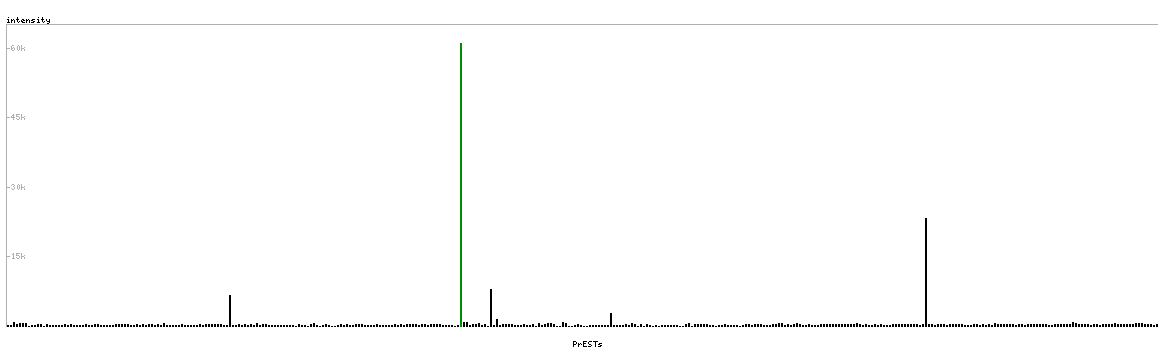 At the top of the view, the position of the antigen (identified by the corresponding HPA identifier) is shown as a green bar. A yellow triangle on the bar indicates a <100% sequence identity to the protein target.