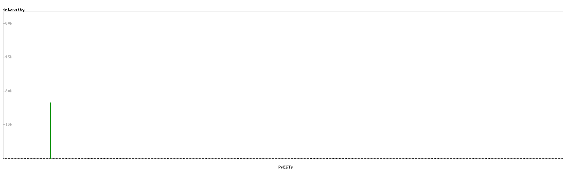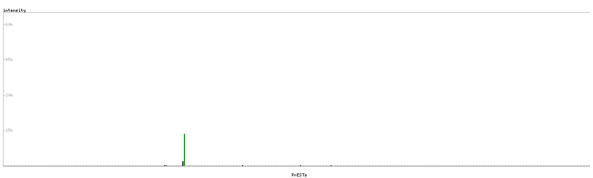 At the top of the view, the position of the antigen (identified by the corresponding HPA identifier) is shown as a green bar. A yellow triangle on the bar indicates a <100% sequence identity to the protein target.