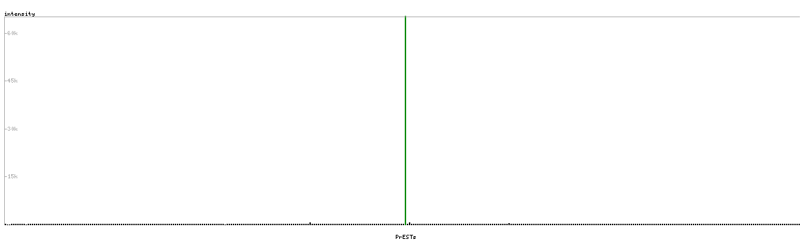 At the top of the view, the position of the antigen (identified by the corresponding HPA identifier) is shown as a green bar. A yellow triangle on the bar indicates a <100% sequence identity to the protein target.