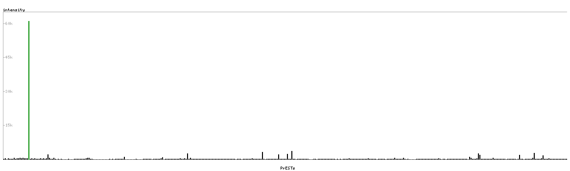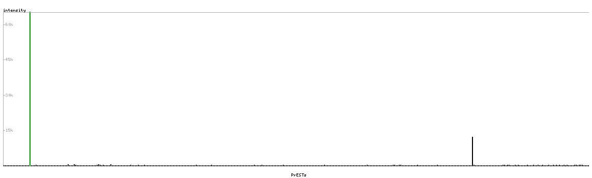 At the top of the view, the position of the antigen (identified by the corresponding HPA identifier) is shown as a green bar. A yellow triangle on the bar indicates a <100% sequence identity to the protein target.