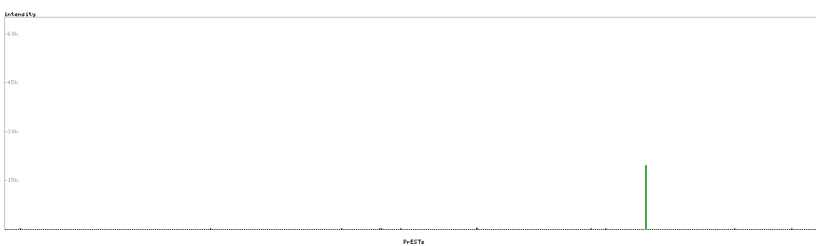 At the top of the view, the position of the antigen (identified by the corresponding HPA identifier) is shown as a green bar. A yellow triangle on the bar indicates a <100% sequence identity to the protein target.