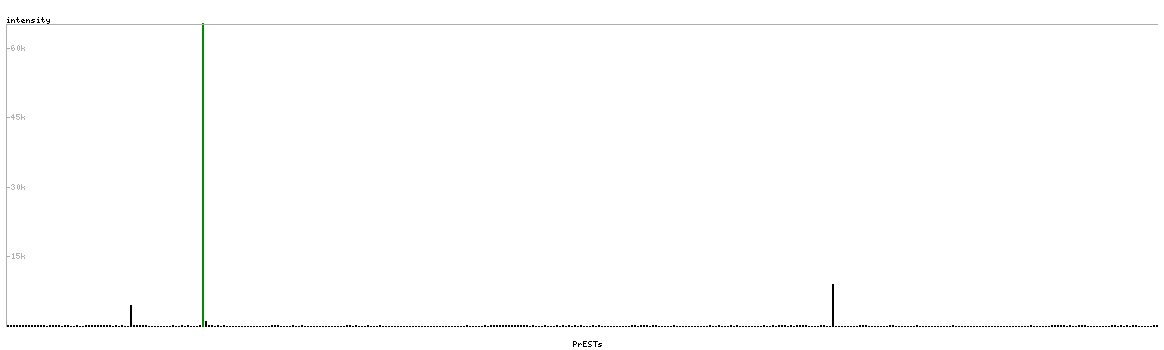 At the top of the view, the position of the antigen (identified by the corresponding HPA identifier) is shown as a green bar. A yellow triangle on the bar indicates a <100% sequence identity to the protein target.