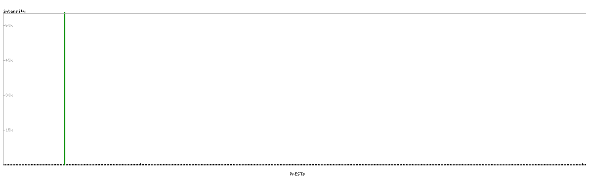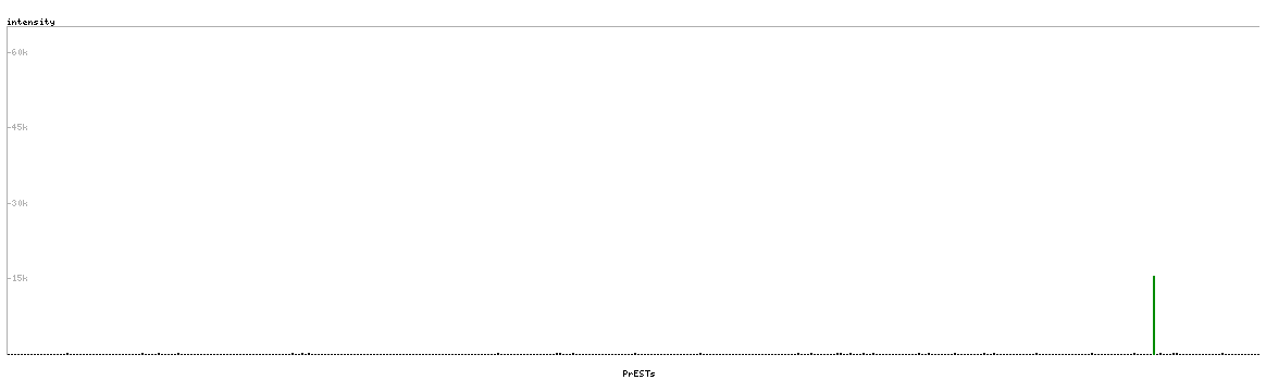 At the top of the view, the position of the antigen (identified by the corresponding HPA identifier) is shown as a green bar. A yellow triangle on the bar indicates a <100% sequence identity to the protein target.
