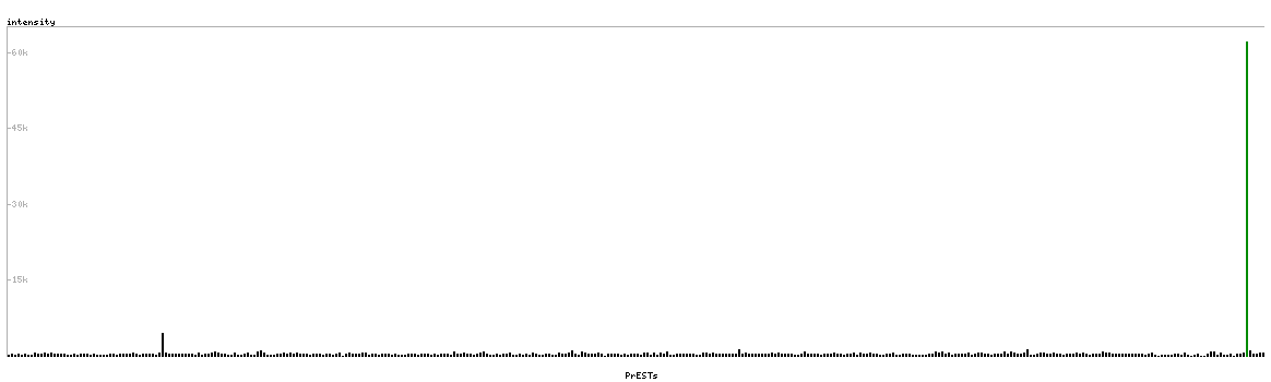 At the top of the view, the position of the antigen (identified by the corresponding HPA identifier) is shown as a green bar. A yellow triangle on the bar indicates a <100% sequence identity to the protein target.