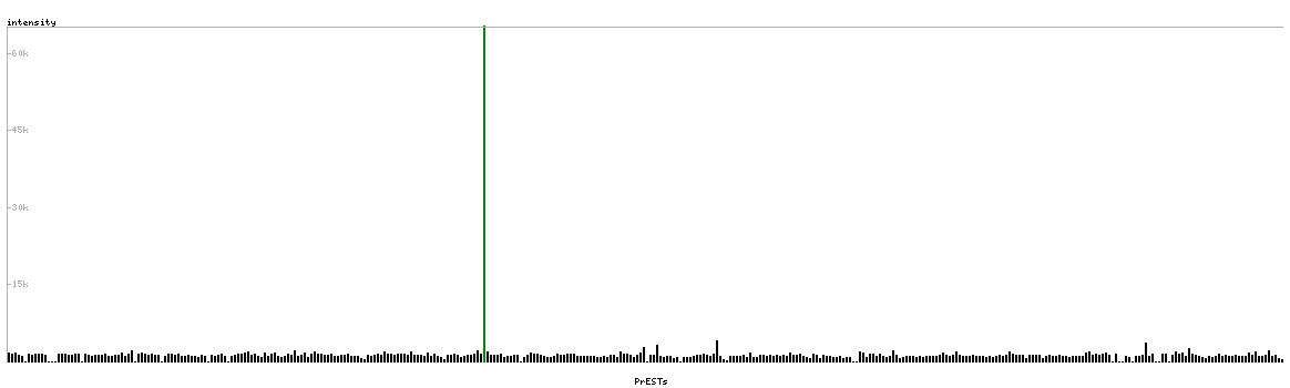 At the top of the view, the position of the antigen (identified by the corresponding HPA identifier) is shown as a green bar. A yellow triangle on the bar indicates a <100% sequence identity to the protein target.