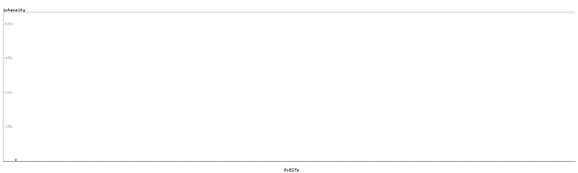 At the top of the view, the position of the antigen (identified by the corresponding HPA identifier) is shown as a green bar. A yellow triangle on the bar indicates a <100% sequence identity to the protein target.