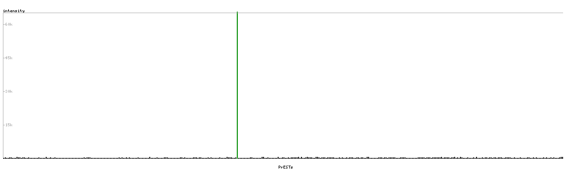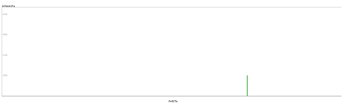 At the top of the view, the position of the antigen (identified by the corresponding HPA identifier) is shown as a green bar. A yellow triangle on the bar indicates a <100% sequence identity to the protein target.