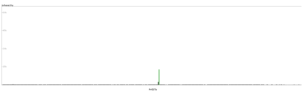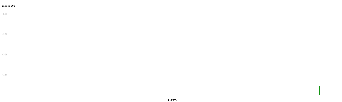 At the top of the view, the position of the antigen (identified by the corresponding HPA identifier) is shown as a green bar. A yellow triangle on the bar indicates a <100% sequence identity to the protein target.