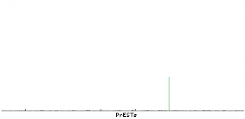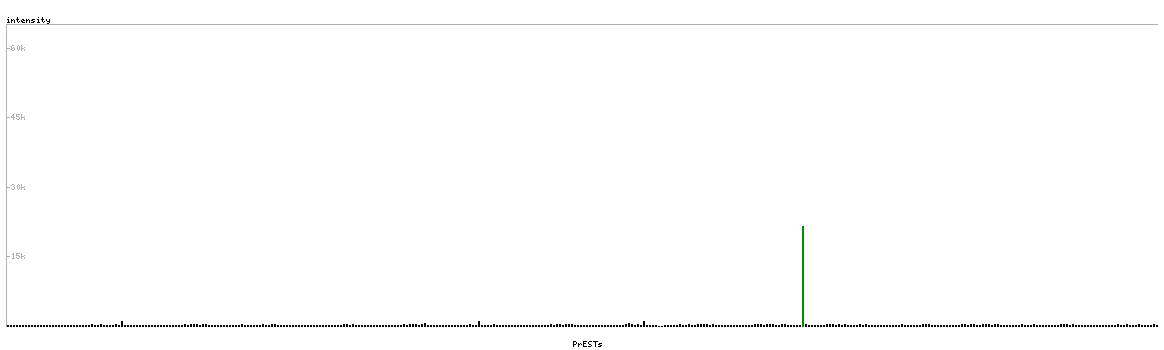 At the top of the view, the position of the antigen (identified by the corresponding HPA identifier) is shown as a green bar. A yellow triangle on the bar indicates a <100% sequence identity to the protein target.