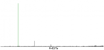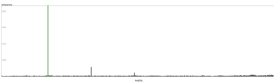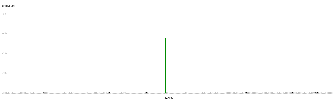 At the top of the view, the position of the antigen (identified by the corresponding HPA identifier) is shown as a green bar. A yellow triangle on the bar indicates a <100% sequence identity to the protein target.