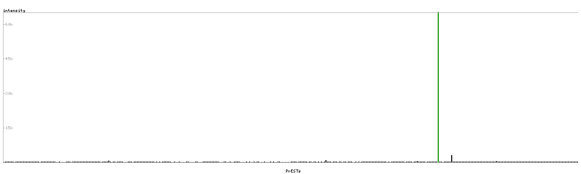 At the top of the view, the position of the antigen (identified by the corresponding HPA identifier) is shown as a green bar. A yellow triangle on the bar indicates a <100% sequence identity to the protein target.