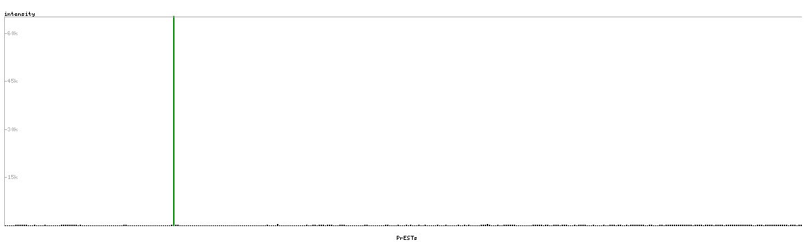At the top of the view, the position of the antigen (identified by the corresponding HPA identifier) is shown as a green bar. A yellow triangle on the bar indicates a <100% sequence identity to the protein target.