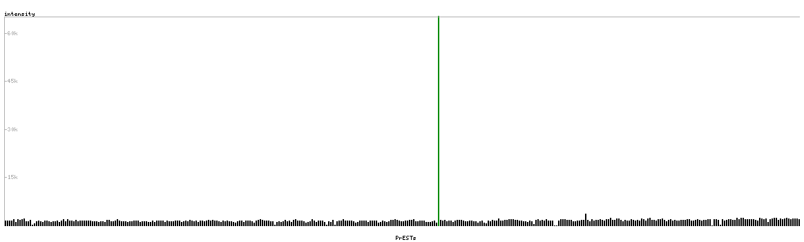 At the top of the view, the position of the antigen (identified by the corresponding HPA identifier) is shown as a green bar. A yellow triangle on the bar indicates a <100% sequence identity to the protein target.