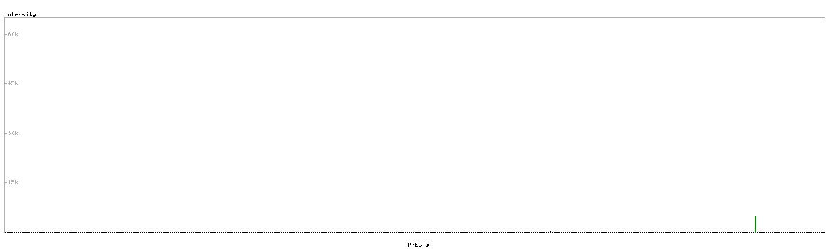 At the top of the view, the position of the antigen (identified by the corresponding HPA identifier) is shown as a green bar. A yellow triangle on the bar indicates a <100% sequence identity to the protein target.