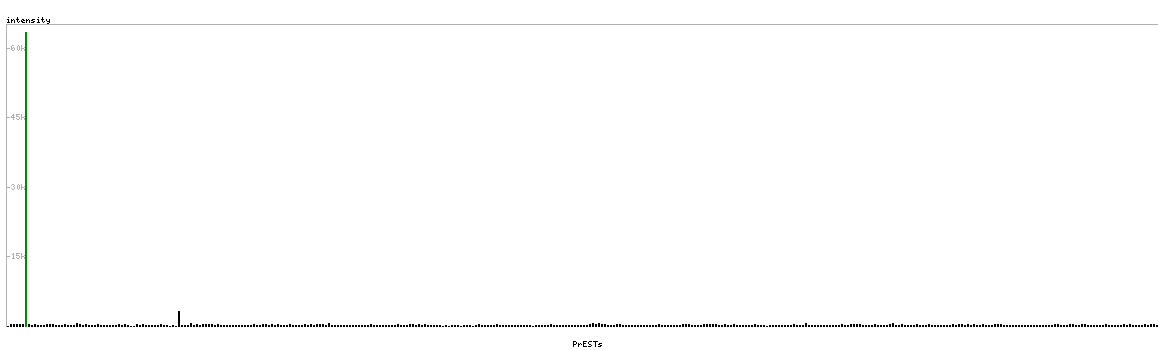At the top of the view, the position of the antigen (identified by the corresponding HPA identifier) is shown as a green bar. A yellow triangle on the bar indicates a <100% sequence identity to the protein target.