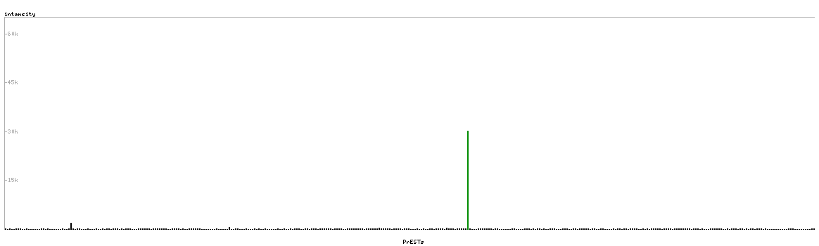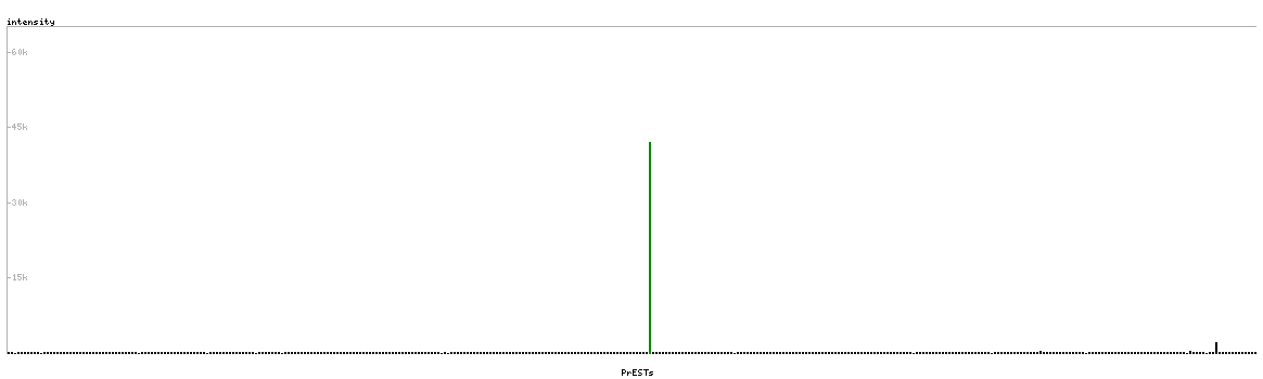 At the top of the view, the position of the antigen (identified by the corresponding HPA identifier) is shown as a green bar. A yellow triangle on the bar indicates a <100% sequence identity to the protein target.