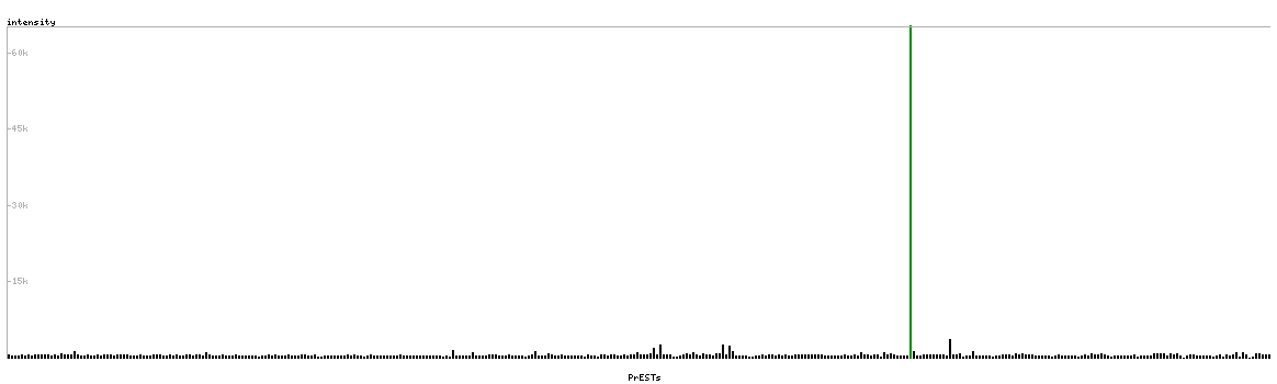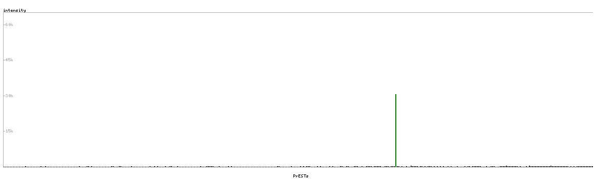 At the top of the view, the position of the antigen (identified by the corresponding HPA identifier) is shown as a green bar. A yellow triangle on the bar indicates a <100% sequence identity to the protein target.