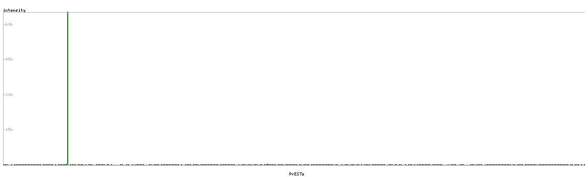 At the top of the view, the position of the antigen (identified by the corresponding HPA identifier) is shown as a green bar. A yellow triangle on the bar indicates a <100% sequence identity to the protein target.