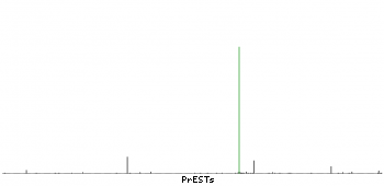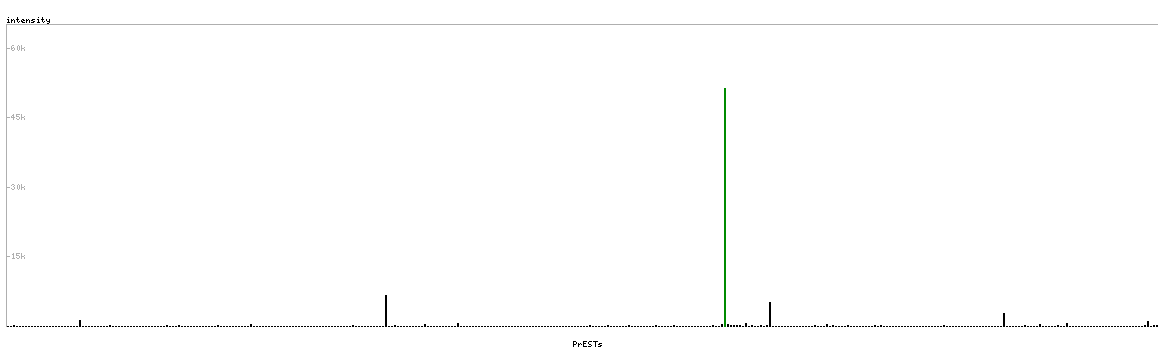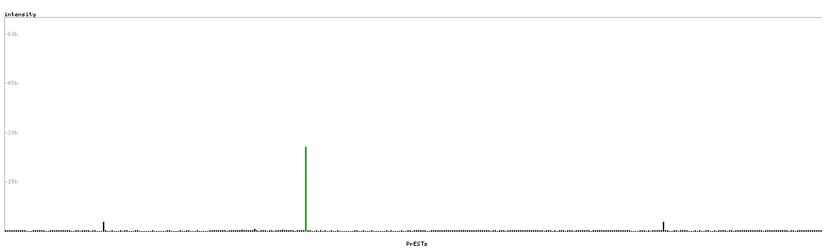 At the top of the view, the position of the antigen (identified by the corresponding HPA identifier) is shown as a green bar. A yellow triangle on the bar indicates a <100% sequence identity to the protein target.