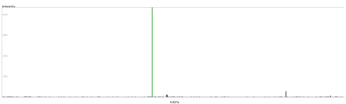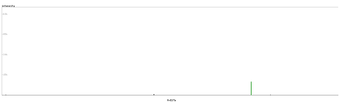 At the top of the view, the position of the antigen (identified by the corresponding HPA identifier) is shown as a green bar. A yellow triangle on the bar indicates a <100% sequence identity to the protein target.