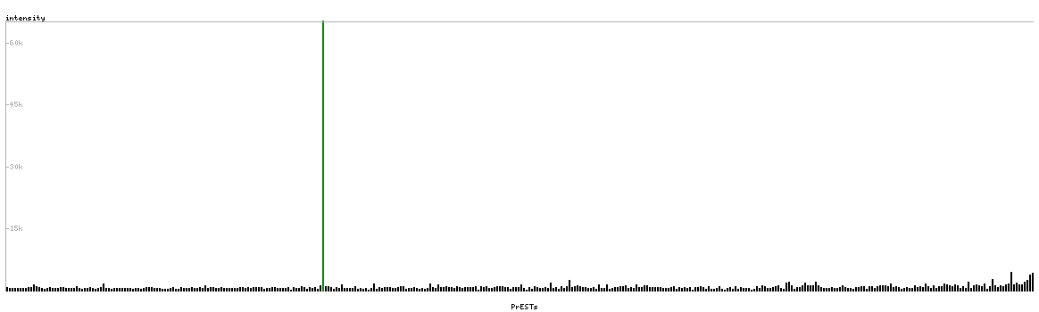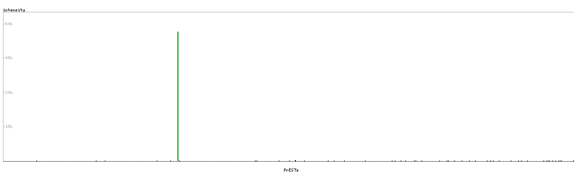 At the top of the view, the position of the antigen (identified by the corresponding HPA identifier) is shown as a green bar. A yellow triangle on the bar indicates a <100% sequence identity to the protein target.