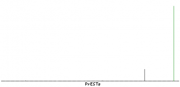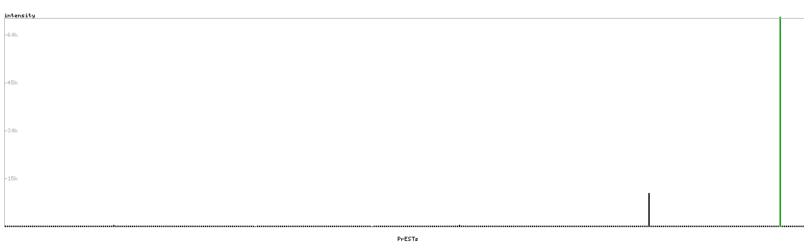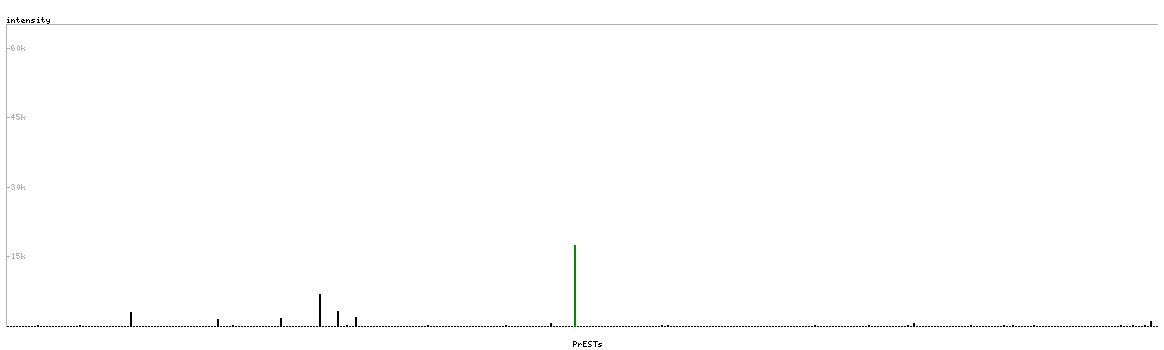 At the top of the view, the position of the antigen (identified by the corresponding HPA identifier) is shown as a green bar. A yellow triangle on the bar indicates a <100% sequence identity to the protein target.