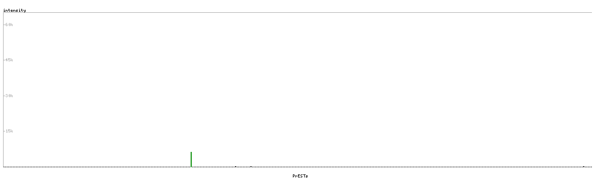 At the top of the view, the position of the antigen (identified by the corresponding HPA identifier) is shown as a green bar. A yellow triangle on the bar indicates a <100% sequence identity to the protein target.