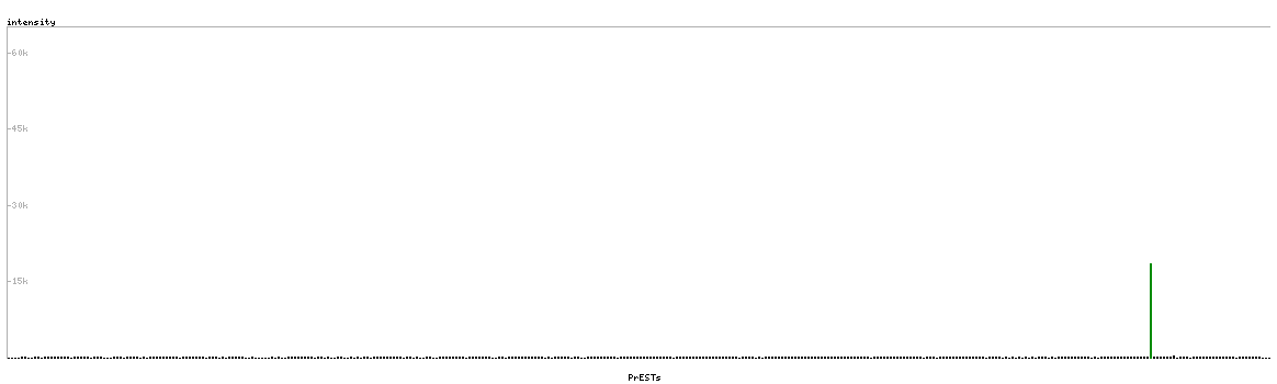 At the top of the view, the position of the antigen (identified by the corresponding HPA identifier) is shown as a green bar. A yellow triangle on the bar indicates a <100% sequence identity to the protein target.