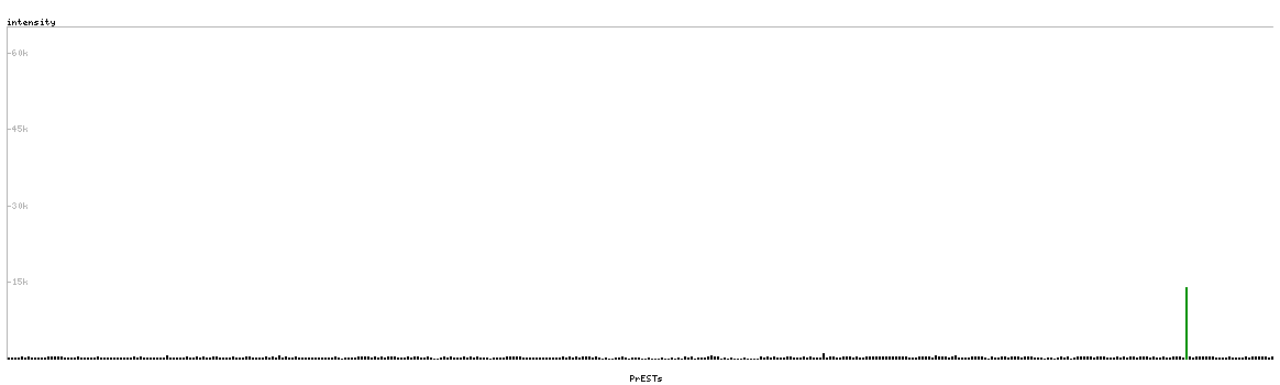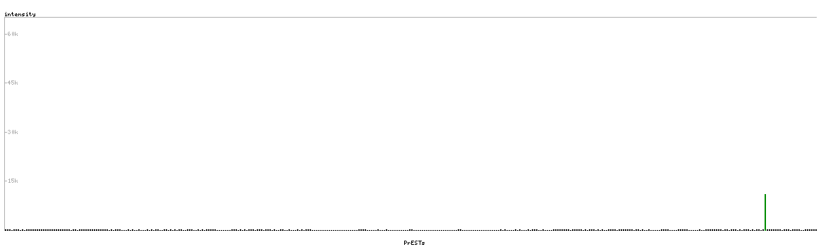 At the top of the view, the position of the antigen (identified by the corresponding HPA identifier) is shown as a green bar. A yellow triangle on the bar indicates a <100% sequence identity to the protein target.