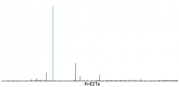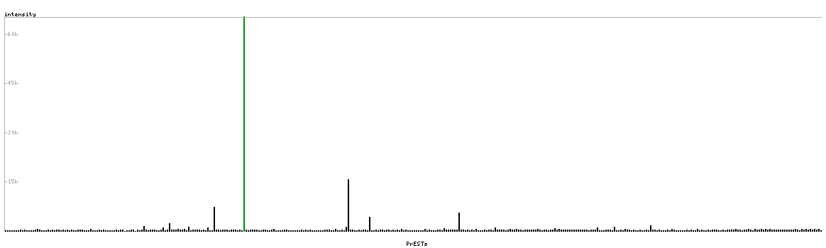 At the top of the view, the position of the antigen (identified by the corresponding HPA identifier) is shown as a green bar. A yellow triangle on the bar indicates a <100% sequence identity to the protein target.