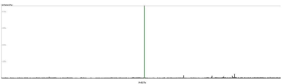 At the top of the view, the position of the antigen (identified by the corresponding HPA identifier) is shown as a green bar. A yellow triangle on the bar indicates a <100% sequence identity to the protein target.