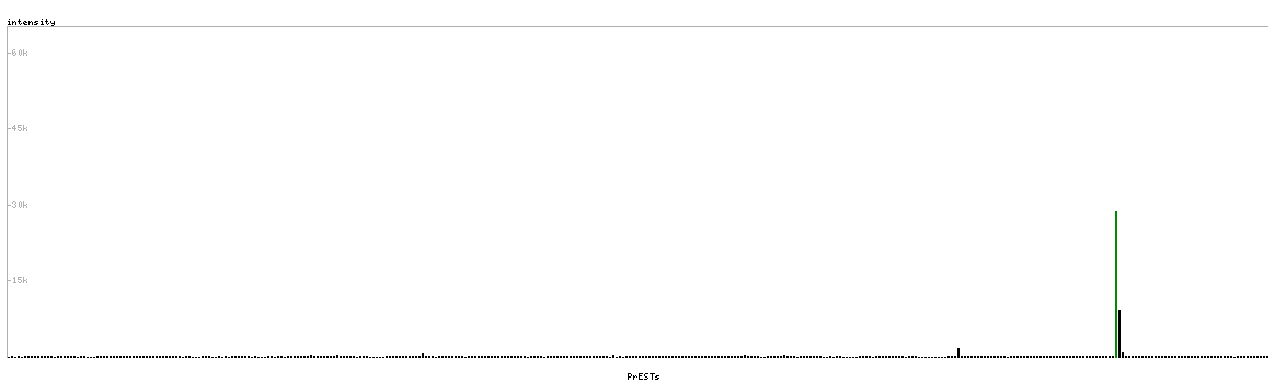At the top of the view, the position of the antigen (identified by the corresponding HPA identifier) is shown as a green bar. A yellow triangle on the bar indicates a <100% sequence identity to the protein target.