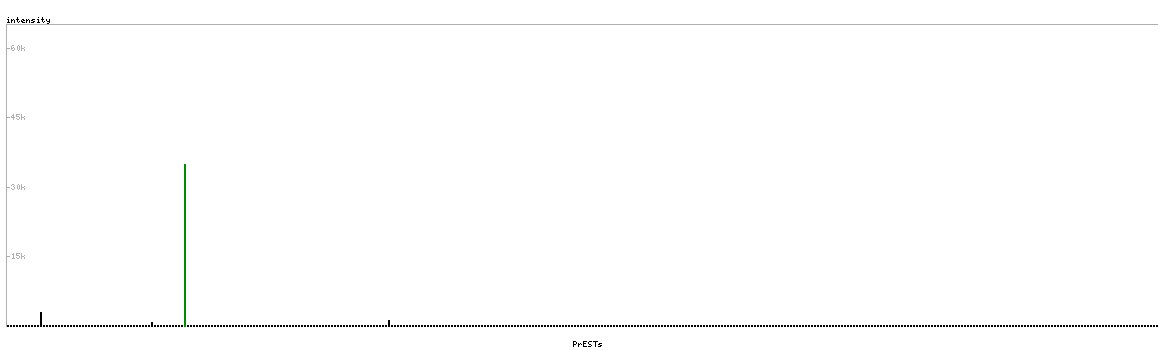 At the top of the view, the position of the antigen (identified by the corresponding HPA identifier) is shown as a green bar. A yellow triangle on the bar indicates a <100% sequence identity to the protein target.