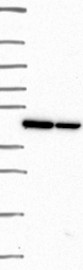 Antibody band pattern is confirmed by antibody HPA061953. Analysis performed using a standard panel of samples.