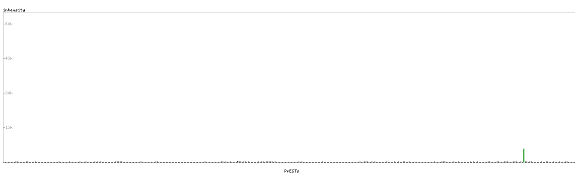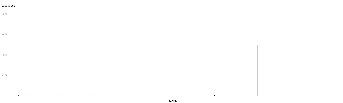 At the top of the view, the position of the antigen (identified by the corresponding HPA identifier) is shown as a green bar. A yellow triangle on the bar indicates a <100% sequence identity to the protein target.