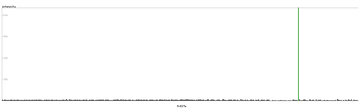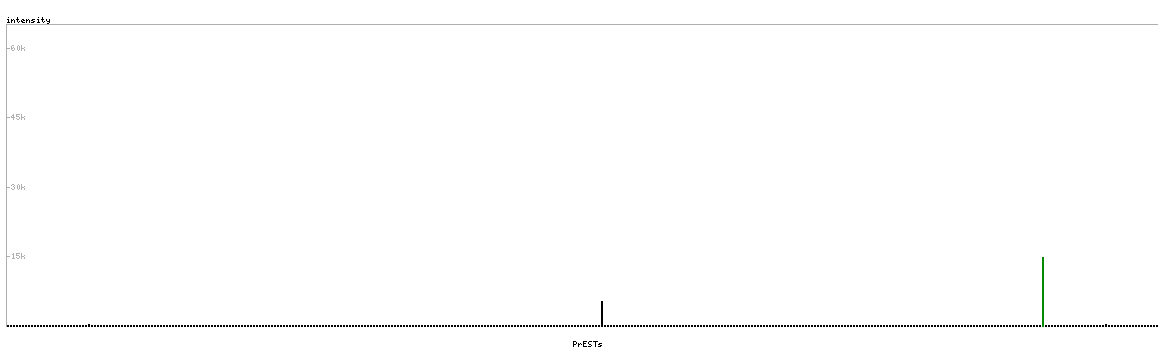 At the top of the view, the position of the antigen (identified by the corresponding HPA identifier) is shown as a green bar. A yellow triangle on the bar indicates a <100% sequence identity to the protein target.