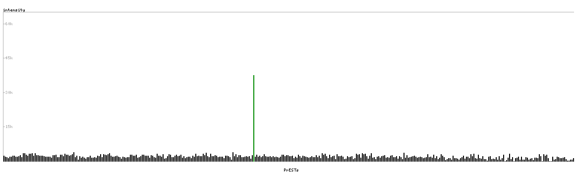 At the top of the view, the position of the antigen (identified by the corresponding HPA identifier) is shown as a green bar. A yellow triangle on the bar indicates a <100% sequence identity to the protein target.