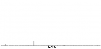 At the top of the view, the position of the antigen (identified by the corresponding HPA identifier) is shown as a green bar. A yellow triangle on the bar indicates a <100% sequence identity to the protein target.