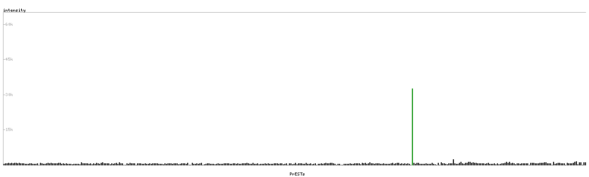 At the top of the view, the position of the antigen (identified by the corresponding HPA identifier) is shown as a green bar. A yellow triangle on the bar indicates a <100% sequence identity to the protein target.