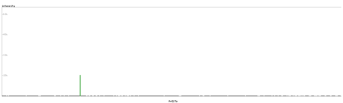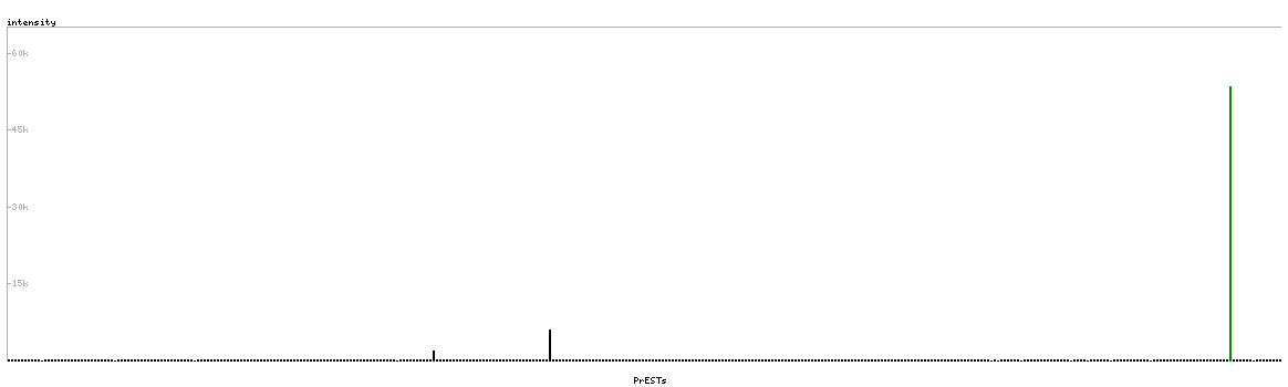 At the top of the view, the position of the antigen (identified by the corresponding HPA identifier) is shown as a green bar. A yellow triangle on the bar indicates a <100% sequence identity to the protein target.