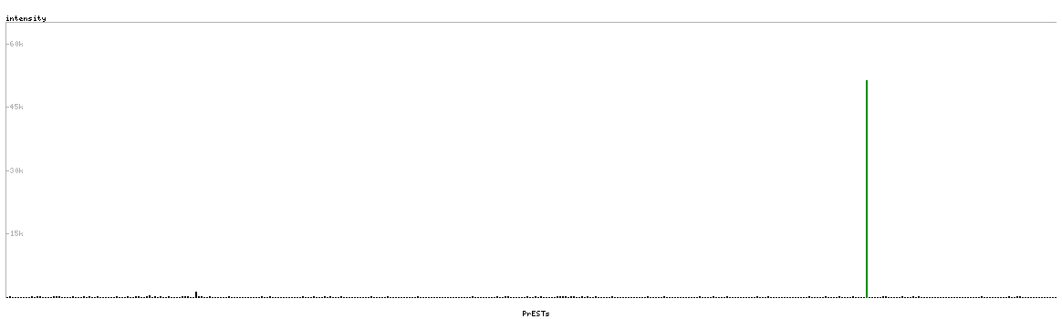 At the top of the view, the position of the antigen (identified by the corresponding HPA identifier) is shown as a green bar. A yellow triangle on the bar indicates a <100% sequence identity to the protein target.