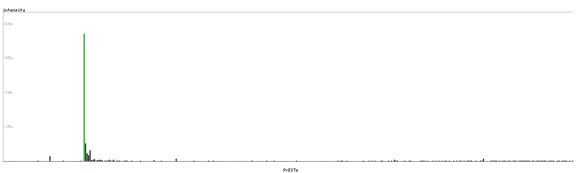 At the top of the view, the position of the antigen (identified by the corresponding HPA identifier) is shown as a green bar. A yellow triangle on the bar indicates a <100% sequence identity to the protein target.