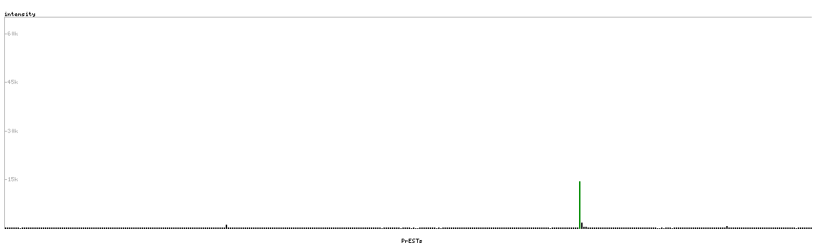 At the top of the view, the position of the antigen (identified by the corresponding HPA identifier) is shown as a green bar. A yellow triangle on the bar indicates a <100% sequence identity to the protein target.