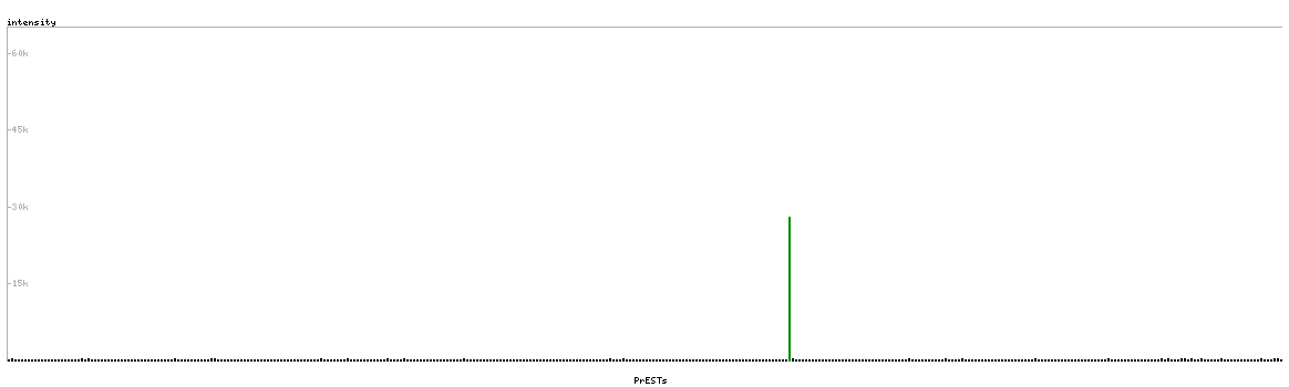 At the top of the view, the position of the antigen (identified by the corresponding HPA identifier) is shown as a green bar. A yellow triangle on the bar indicates a <100% sequence identity to the protein target.