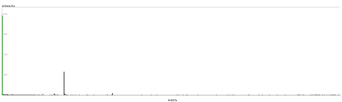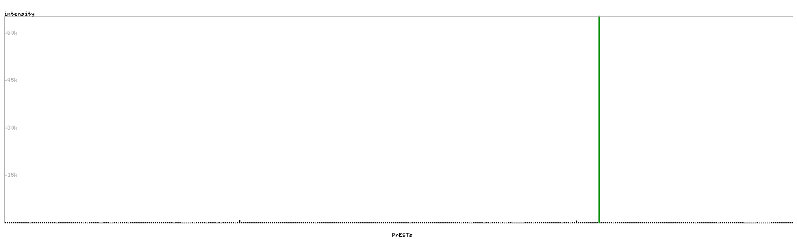 At the top of the view, the position of the antigen (identified by the corresponding HPA identifier) is shown as a green bar. A yellow triangle on the bar indicates a <100% sequence identity to the protein target.