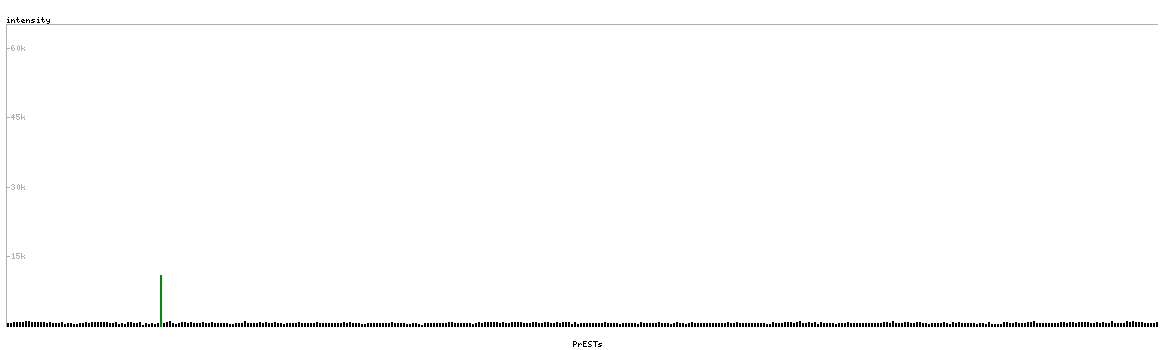 At the top of the view, the position of the antigen (identified by the corresponding HPA identifier) is shown as a green bar. A yellow triangle on the bar indicates a <100% sequence identity to the protein target.